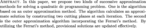 | Outer approximation method incorporating the Ferrari's method for solving a quadratic DC programming problem (JNCA) |