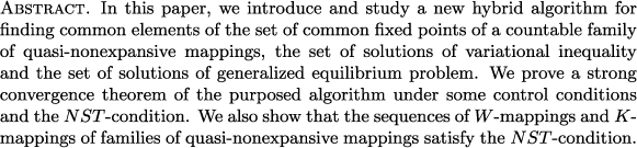 | A new hybrid algorithm for a countable family of quasi-nonexpansive mappings and equilibrium problems (JNCA) |