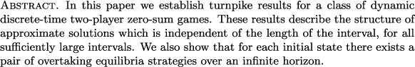 | The existence and structure of approximate solutions of dynamic discrete time zero-sum games (JNCA) |