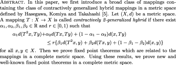 Fixed point theorems for contractively generalized hybrid mappings in complete metric spaces (JNCA) |