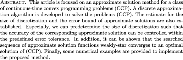 | Solving a class of continuous-time convex programming problems with approximation (JNCA) |