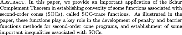 | Using Schur complement theorem to prove convexity of some SOC-functions (JNCA) |