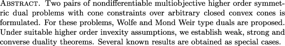 | Nondifferentiable higher order symmetric duality in multiobjective programming involving cones (JNCA) |