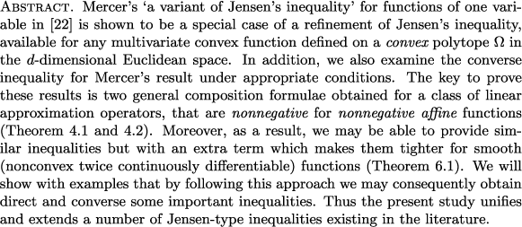 Barycentric coordinates, convexity, nonnegative linear operators, Jensen's inequality, polytopes, pointwise inequality, linear precision, multivariate approximation, partition of unity