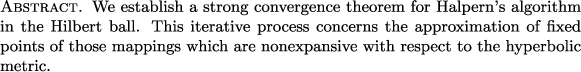 Asymptotic center, fixed point, Hilbert ball, hyperbolic metric, iterative algorithm, metric line, metric segment, metric triangle, nonexpansive mapping