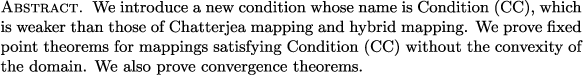 | Fixed point theorems for new nonlinear mappings satisfying Condition (CC)} (LNA) |