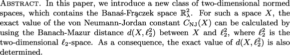 Banach-Mazur distance, von Neumann-Jordan constant |