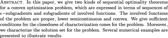 | Sequential optimality theorems, ε-subgradient, convex optimization problem, closedness of characterization cone, solution set |