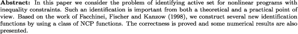 | Some new identification functions for active constraints in nonlinear programming (PJO) |