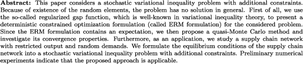 | Stochastic variational inequality problems with additional constraints and their applications in supply chain network equilibria (PJO) |
