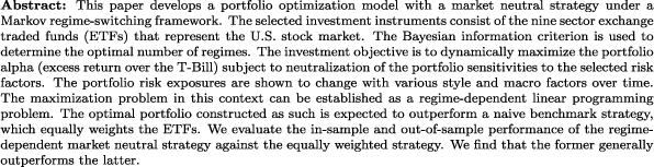 sector exchange traded fund, factor risk neutral, Markov regime switching, factor risk, portfolio optimization