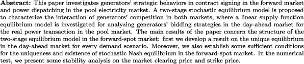 | A two-stage linear supply function equilibrium model for electricity markets with forward contracts (PJO) |