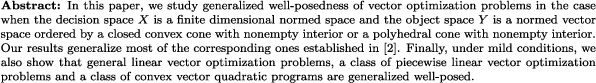 | Generalized well-posedness of vector optimization problems (PJO) |