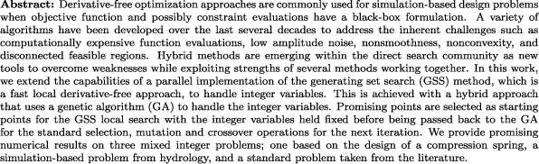 | mixed-integer problems, generating set-search, genetic algorithm |
