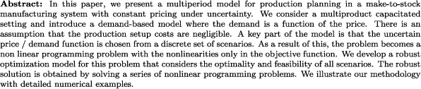 | Joint pricing and production planning of multi-period multi-product systems with uncertainty in demand (PJO) |