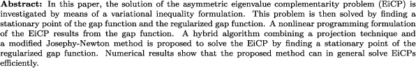 | Variational inequality formulation of the asymmetric eigenvalue complementarity problem and its solution by means of gap functions (PJO) |