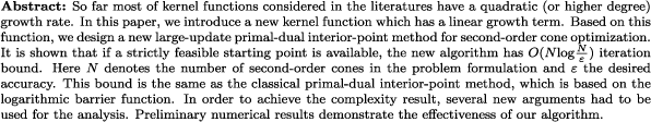 | second-order cone optimization, interior-point methods, kernel function, polynomially complexity |