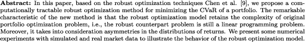| Robust conditional value-at-risk optimization for asymmetrically distributed asset returns (PJO) |
