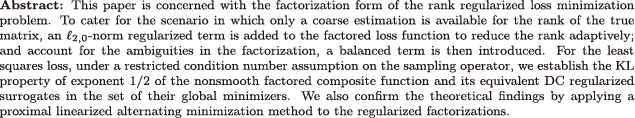 -norm and DC regularized factorizations for low-rank matrix recovery (PJO)