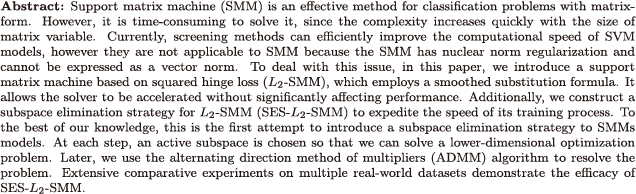 Renxiu Feng, Peiwei Zhong and Yitian Xu: A subspace elimination strategy for accelerating support matrix machine (PJO)