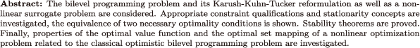 | bilevel programming, mathematical programs with equilibrium constraints, S-stationarity, M-stationarity, strong stability |