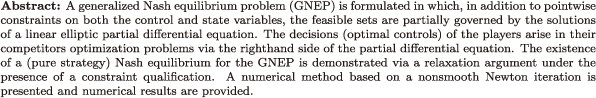 | generalized Nash equilibrium problem, GNEP, PDE-constrained optimization, nonsmooth Newton methods |