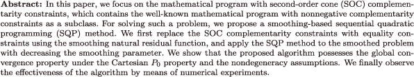 | A smoothing SQP method for mathematical programs with linear second-order cone complementarity constraints (PJO) |