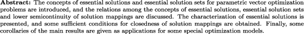 | ssential solution, essential solution set, vector optimization, stability, parametric optimization |