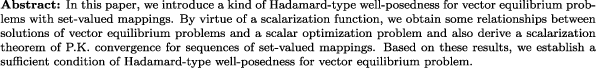 | Hadamard-type well-posedness for a vector equilibrium problem with set-valued mappings (PJO) |