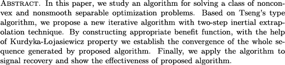 Xingmin Jia and Jing Zhao: Two-step inertial Tseng's type algorithm for solving nonconvex and nonsmooth separable optimization problems (AAO)