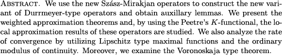 Md. Nasiruzzaman, S. A. Mohiuddine and Jabr Aljedani: Approximation by a new Durrmeyer-type Szasz-Mirakjan operators (JNCA)
