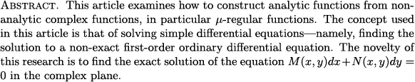 Endang Cahya Mulyaning Asih, Edi Cahyono, Al Azhary Masta and Sofihara Al Hazmy: From $\mu$-regularity to analyticity : Integrating factors in complex differential equations (JNCA)