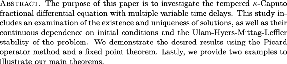 Ho Vu: On tempered k-Caputo fractional differential equation involving multiple variable delays (JNCA)