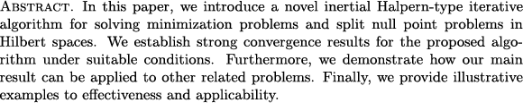 Jukrapong Tiammee and Supalin Tiammee: Strong convergence of an inertial Halpern-type algorithm for minimization and split null point problems in Hilbert spaces (JNCA)