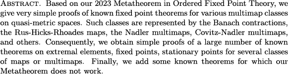 Sehie Park: New proofs of fixed point theorems on quasi-metric spaces (JNCA)