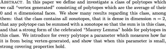 Shiri Artstein-Avidan, Tomer Falah and Boaz A. Slomka: Vertex generated polytopes (PAFA)