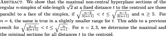 Hermann Konig: Non-central sections of the regular n-simplex (PAFA)