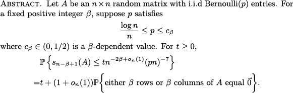 Han Huang: Rank of sparse Bernoulli matrices (PAFA)