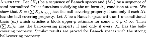 Bentuo Zheng: Ball covering property for unconditional direct sum of Banach spaces (PAFA)