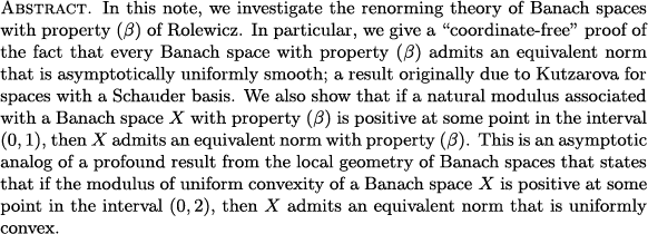 Florent P. Baudier and Gilles Lancien: An asymptotic analog of a local-to-global phenomenon for uniformly convex renormings (PAFA)