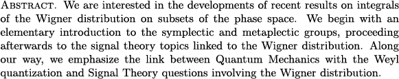 Nicolas Lerner: Symplectic, metaplectic groups and integrals of the Wigner distribution (PAFA)